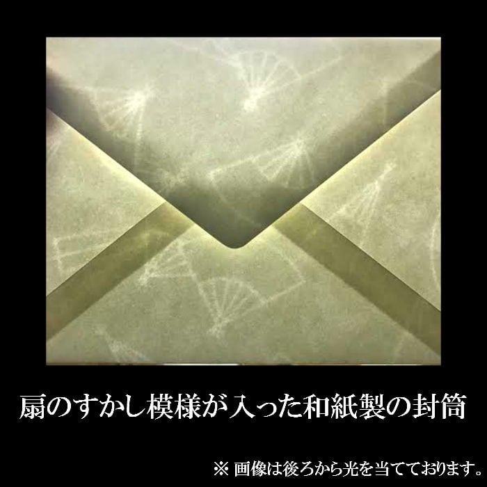 扇の透かしが入った中紙が入っており、「Season's Greetings and Best Wishes for The New Year」というクリスマスカード用の定型文が印字されております。