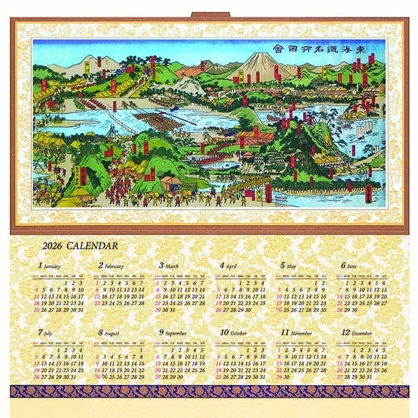 東海道名所図会を描いたデザインの2026年(令和8年)のカレンダーカードとなっております。