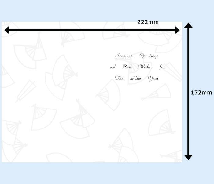 扇の透かしが入った中紙が入っており、「Season's Greetings and Best Wishes for The New Year」というクリスマスカード用の定型文が印字されております。