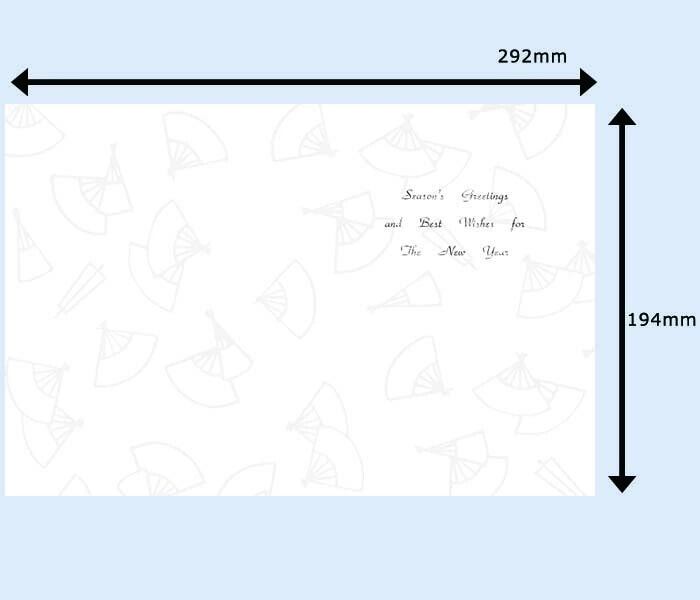 扇の透かしが入った中紙が入っており、「Season's Greetings and Best Wishes for The New Year」というクリスマスカード用の定型文が印字されております。