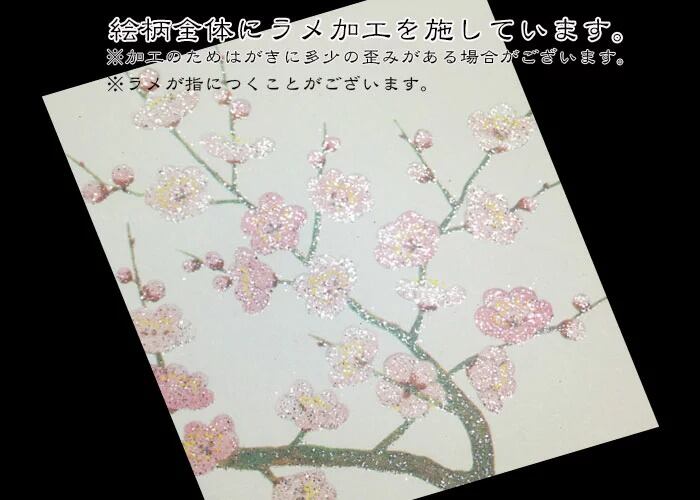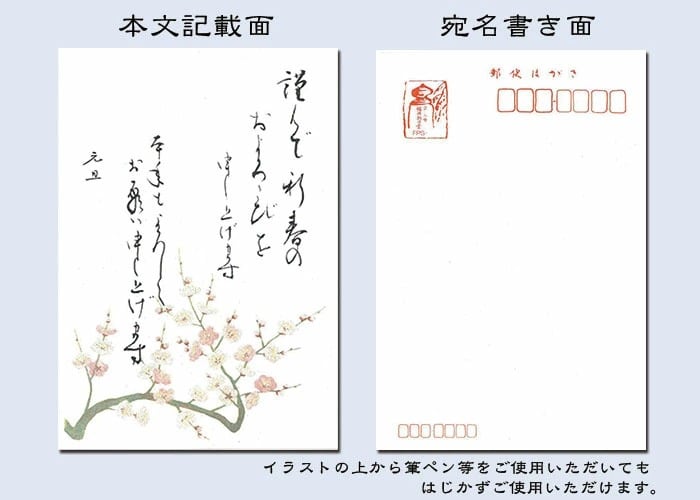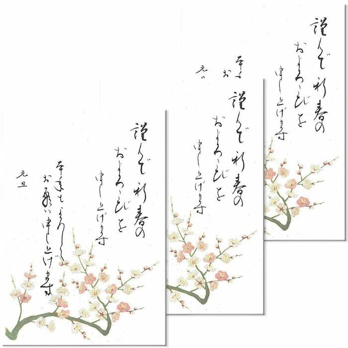 年賀 はがき 和紙 年賀状 葉書 和風 ハガキ 冬 イラスト ポストカード 無料 御礼状 挨拶状【花の寿ぎ FPS-801A 梅(うめ) 3枚入り 定型文付き】絵葉書 福井朝日堂 京都 | F. A. Greetings
