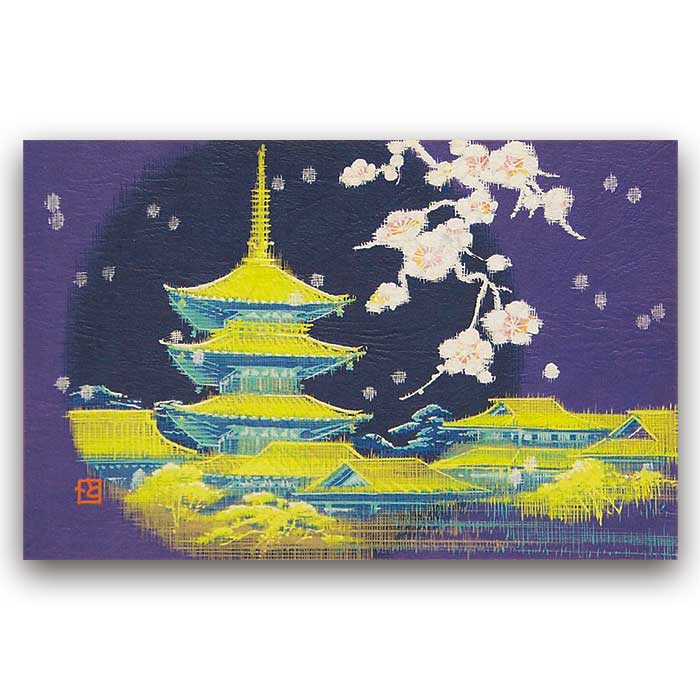 クリスマスカード 和風 グリーティングカード ニューイヤーカード バレンタイン メッセージカード 冬 正月 春節 旧正月 2024 新商品【F20-666s-24】桜 五重塔 和紙 ポストカード 絵葉書 福井朝日堂 京都 | F. A. Greetings