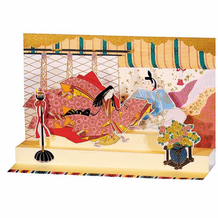 王朝絵巻のような平安貴族をポップアップ式の飛び出す立体型の飛び出すグリーティングカードとなっております。