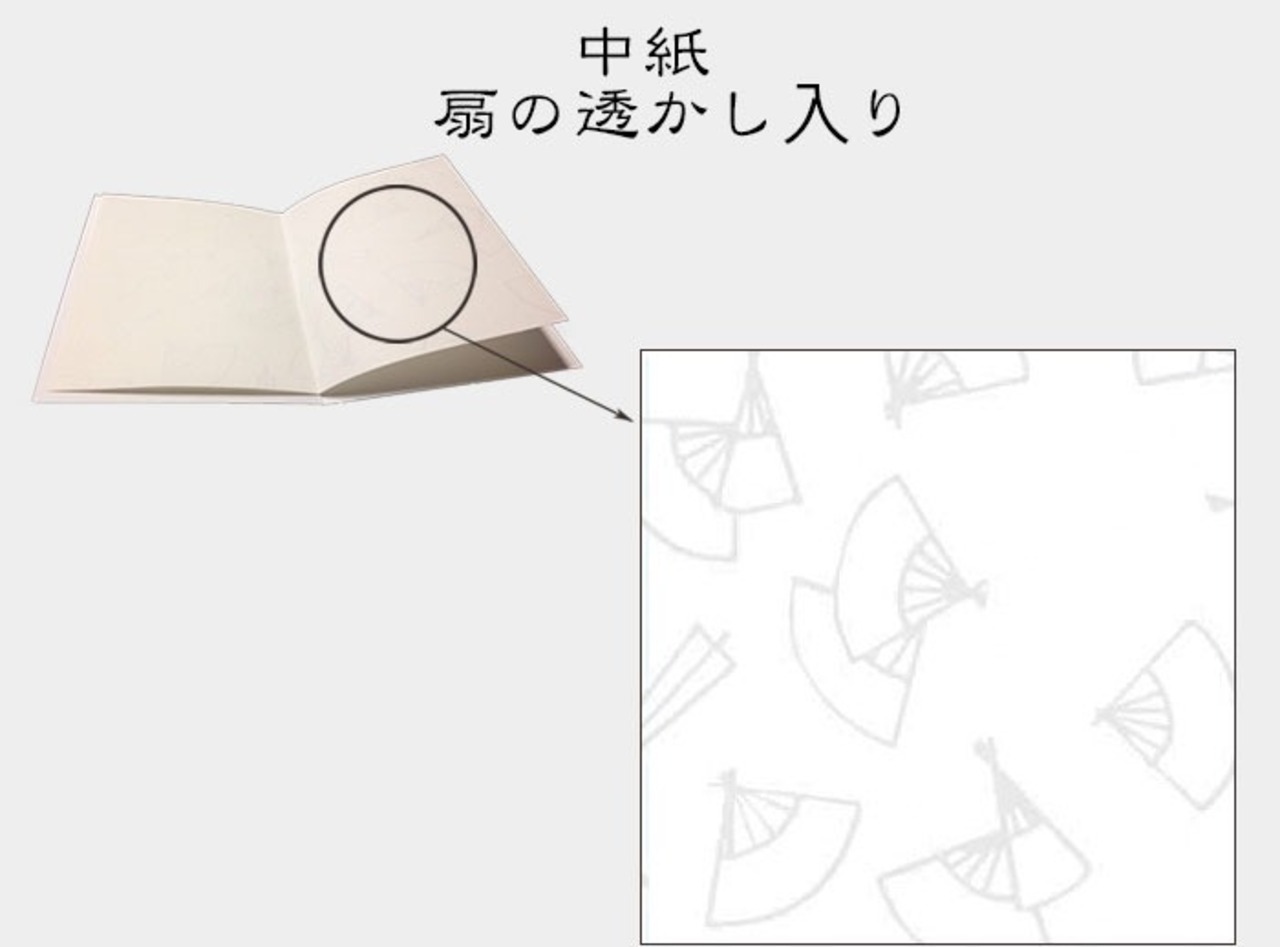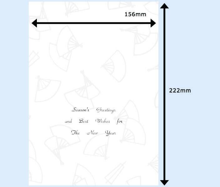 扇の透かしが入った中紙が入っており、「Season's Greetings and Best Wishes for The New Year」というクリスマスカード用の定型文が印字されております。