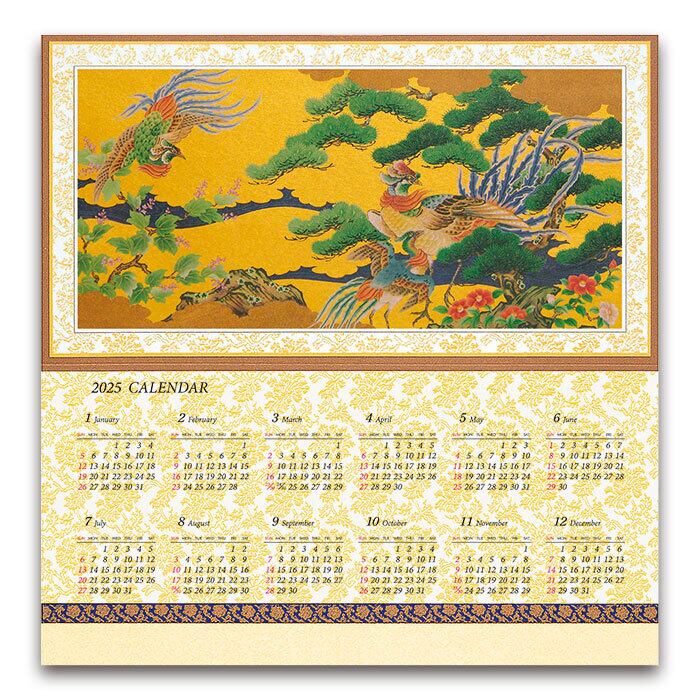 2025年(令和7年)の鳳凰などを描いた豪華四季花鳥のカレンダーカードのデザインとなっております。